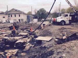 A vacuum truck removes the last of the debris in the turbine chamber.