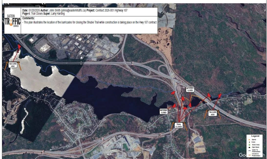 The Shubenacadie Canal Commission wishes to inform the public that the canal corridor and trail section between Lake Charles and Lake William are currently closed for safety reasons due to construction associated with the Highway 107 Twinning Project.